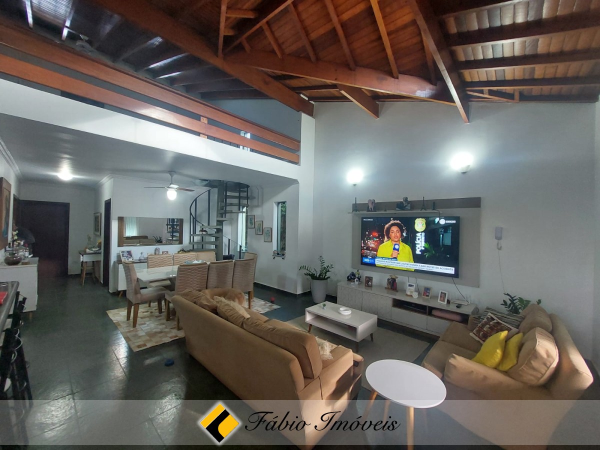 Sala ampla com pé direito alto para 2 ambientes, cozinha balcão americano integrado, armários embutidos, wc social, 3 dormitórios sendo 2 suítes, mezanino espaçoso, wc e quarto de armazenamento.