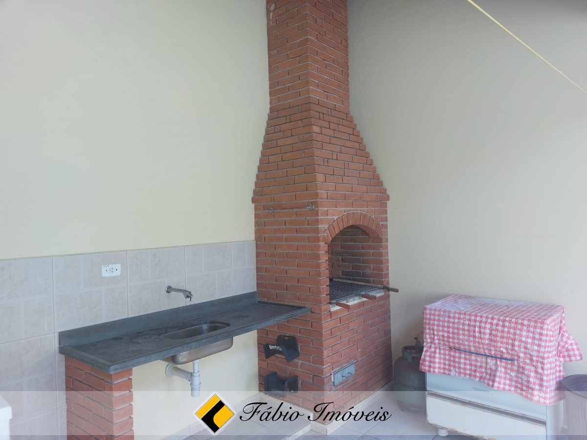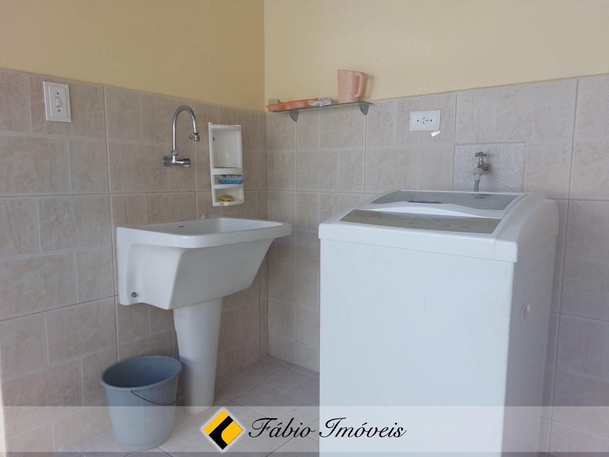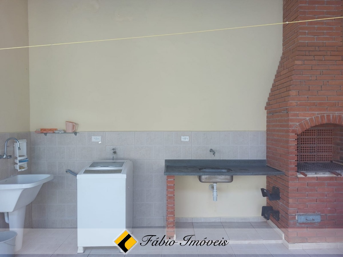 Corredor de ventilação largo, parte externa com churrasqueira e pia, área de serviço, quarto, wc e quintal.