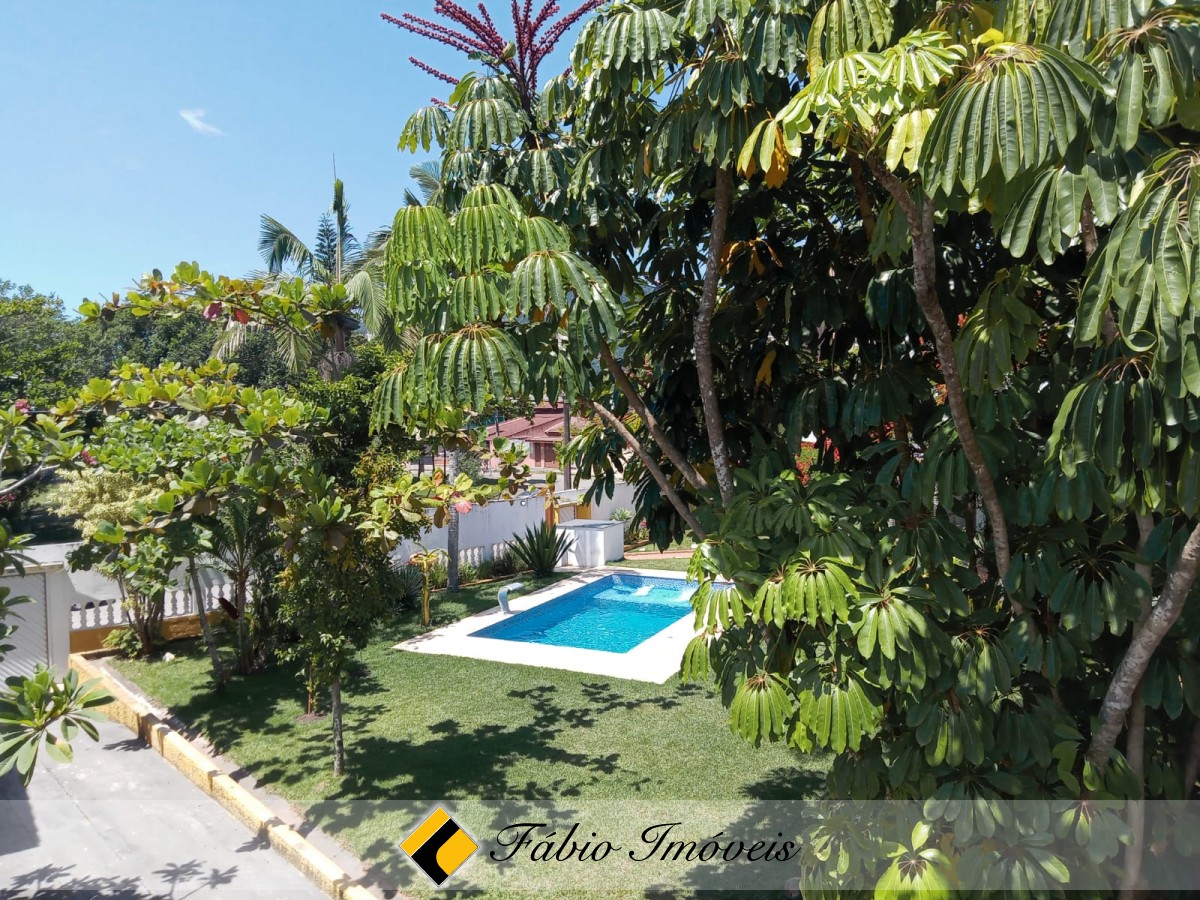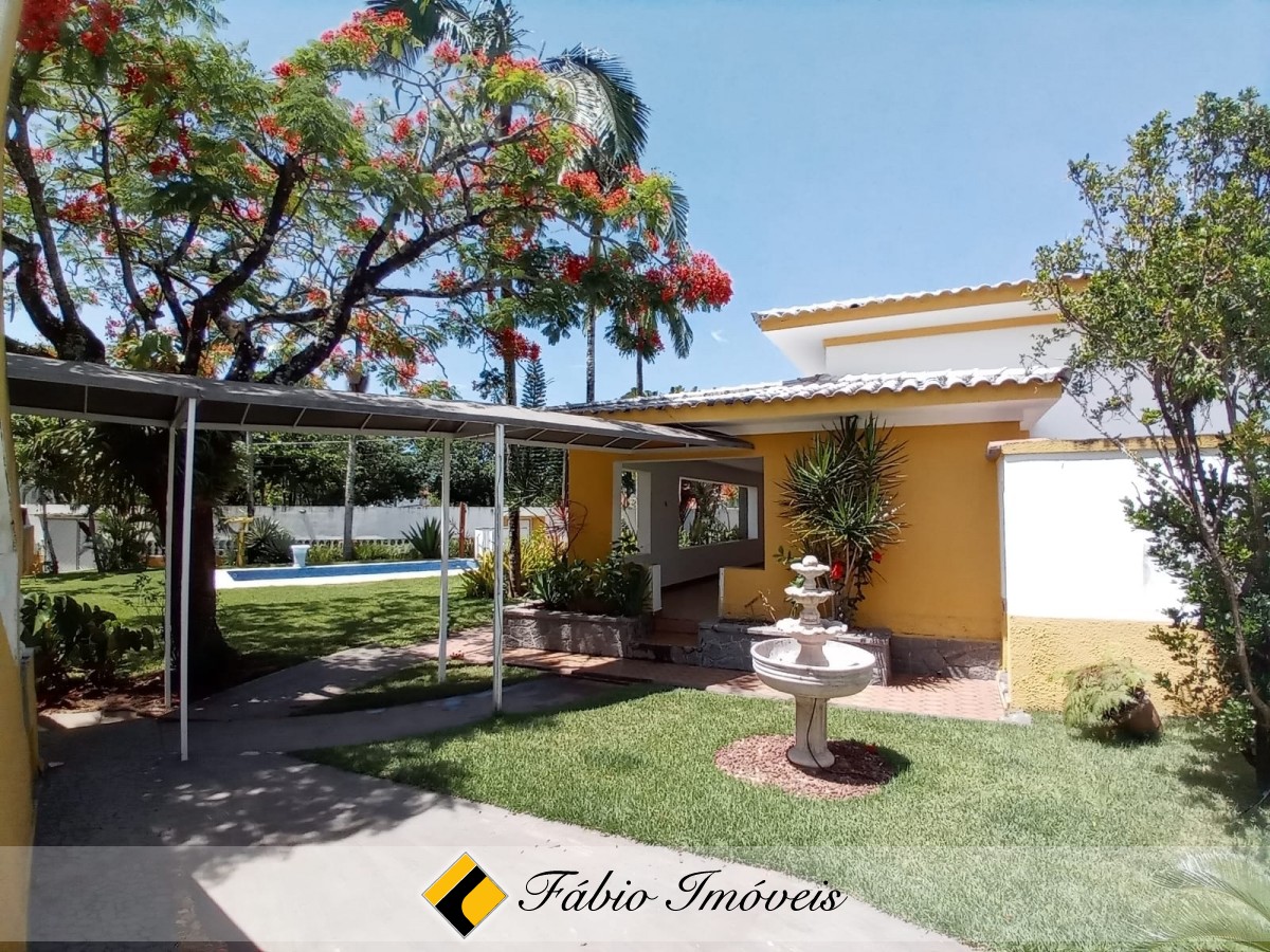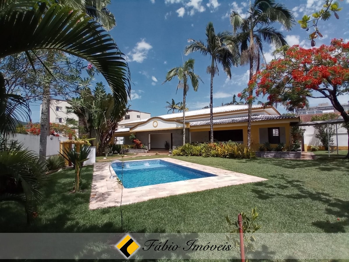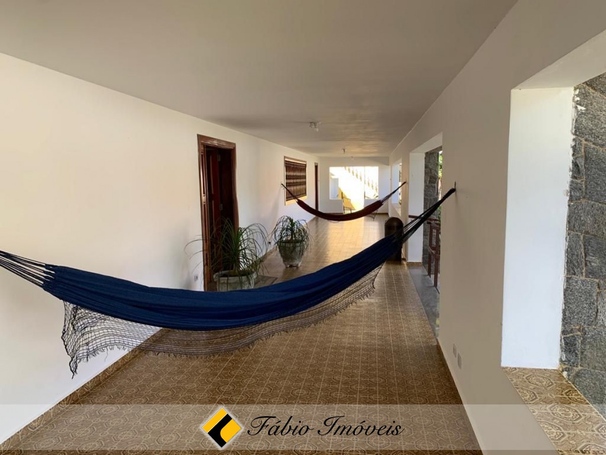 Contém 4 amplas suítes, sala para 2 ambientes, banheiro social, cozinha, varanda, área gourmet com churrasqueira, forno e fogão a lenha, lindo espaço gramado, piscina com cascata, e diversas vagas para veículos.