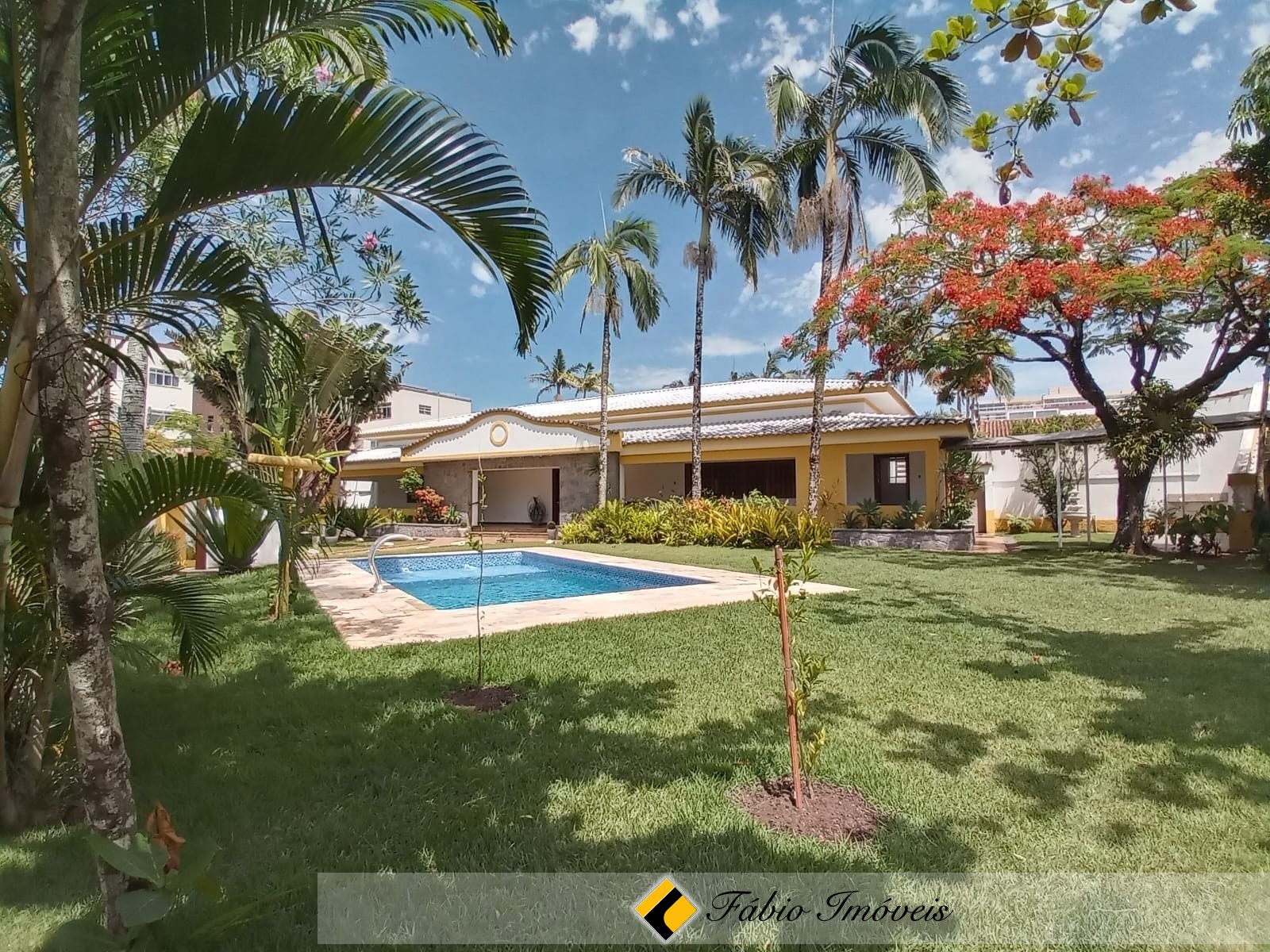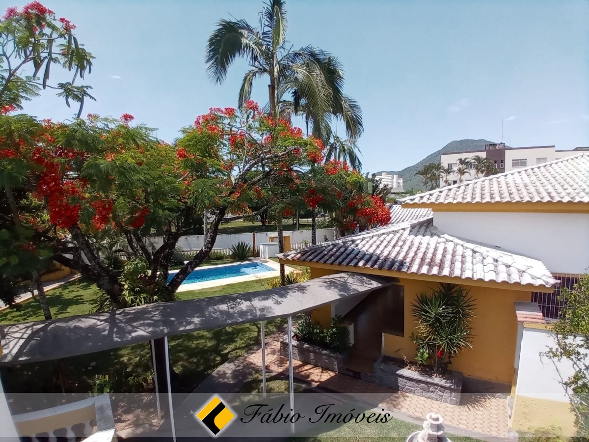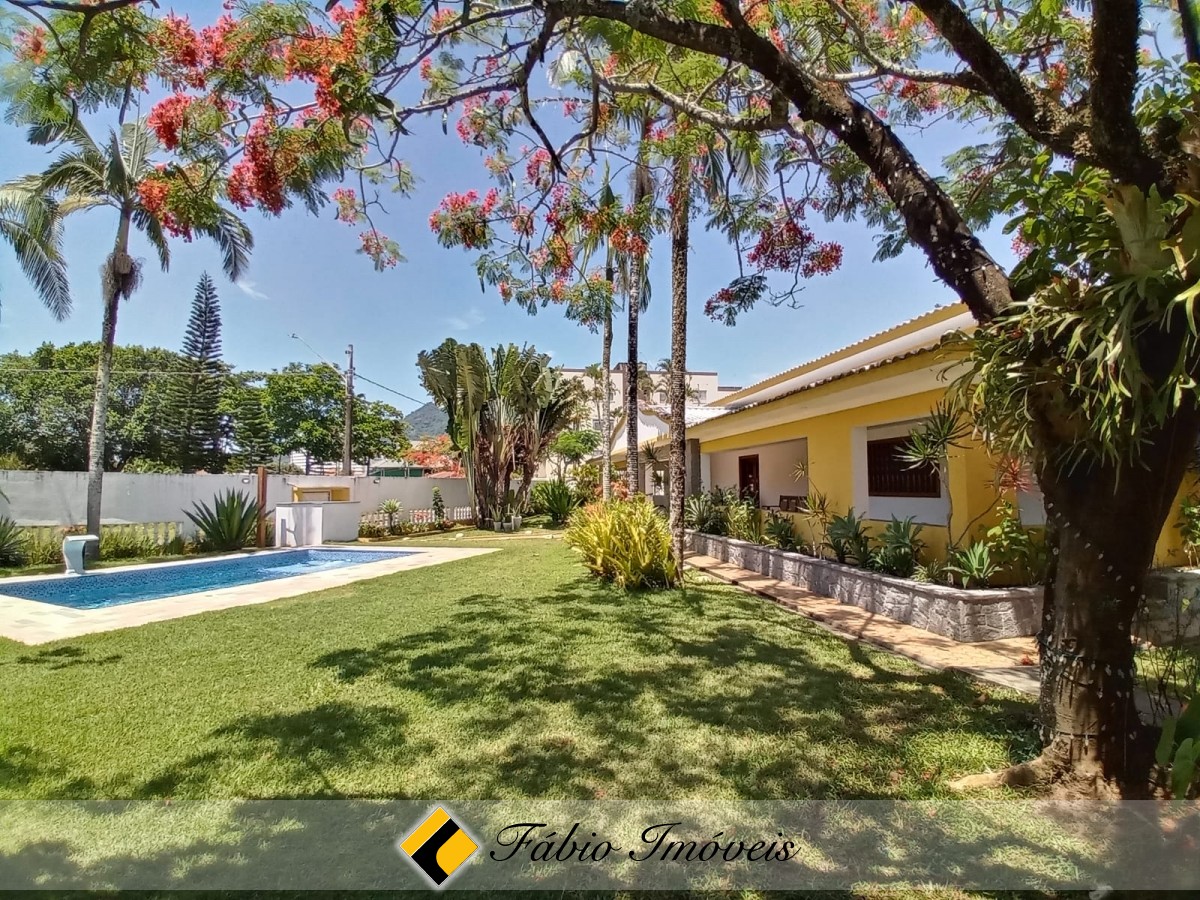 Contém 4 amplas suítes, sala para 2 ambientes, banheiro social, cozinha, varanda, área gourmet com churrasqueira, forno e fogão a lenha, lindo espaço gramado, piscina com cascata, e diversas vagas para veículos.