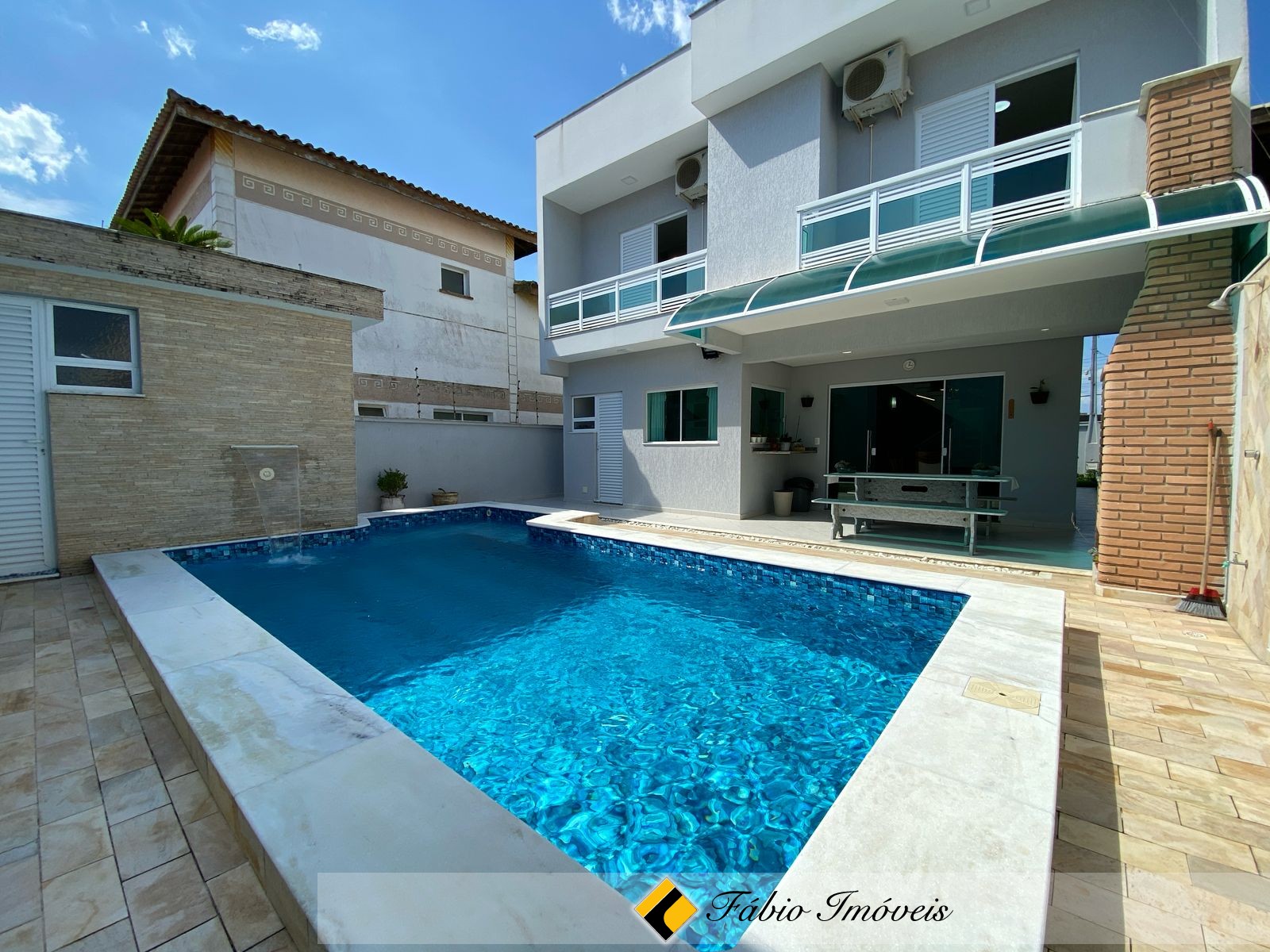 4 dormitórios, sendo 3 suites, todas com ar condicionado, sendo 1 master com closet e hidro, wc social, sala intima, sala pra 2 ambientes com janela piso-teto, cozinha americana com armários planejados, coifa, área de serviço, espaço goumet, piscina com cascata, wc externo, duas vagas de garagem, cerca elétrica e alarme monitorado.