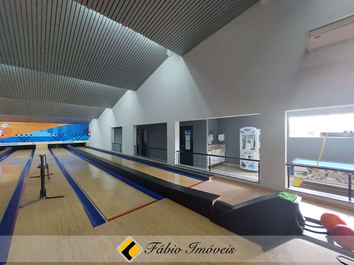Balcão, cozinha, recepção, forno a lenha, salão de jogos, wc para pessoas com necessidades especias, wc feminino, wc masculino, 2 câmaras frias, depósito de bebidas, despensa, área de serviço e 6 pistas de boliche.