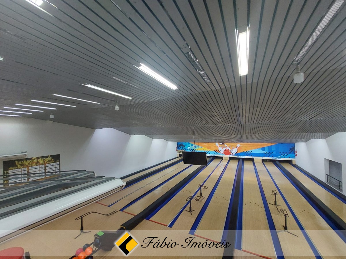 No piso superior contamos ainda com sala de reunião, despensa grande com câmara de congelamento de alimentos, wc com vestiário feminino, wc com vestiário masculino, almoxarifado, 2 escritórios e corredor amplo com vista total para a pista de boliche.
